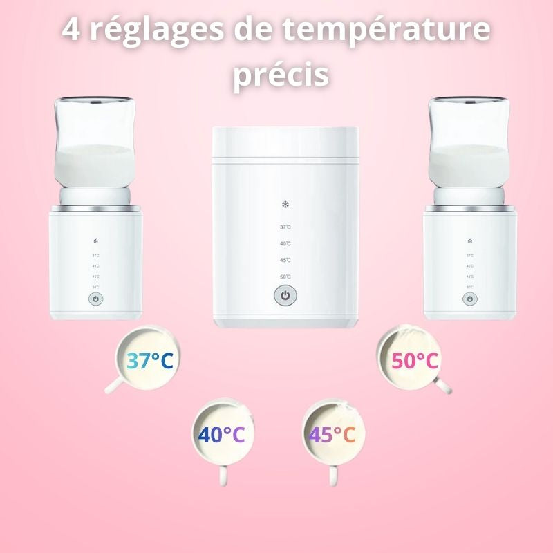 Avec ses 4 réglages de température précis, vous obtenez toujours la chaleur idéale: ni trop chaud pour éviter les brûlures, ni trop froid pour le confort de bébé.