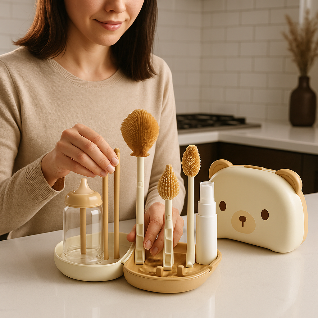 Ce n’est pas un simple égouttoir – c’est un ensemble tout-en-un qui couvre chaque détail du nettoyage des biberons :
