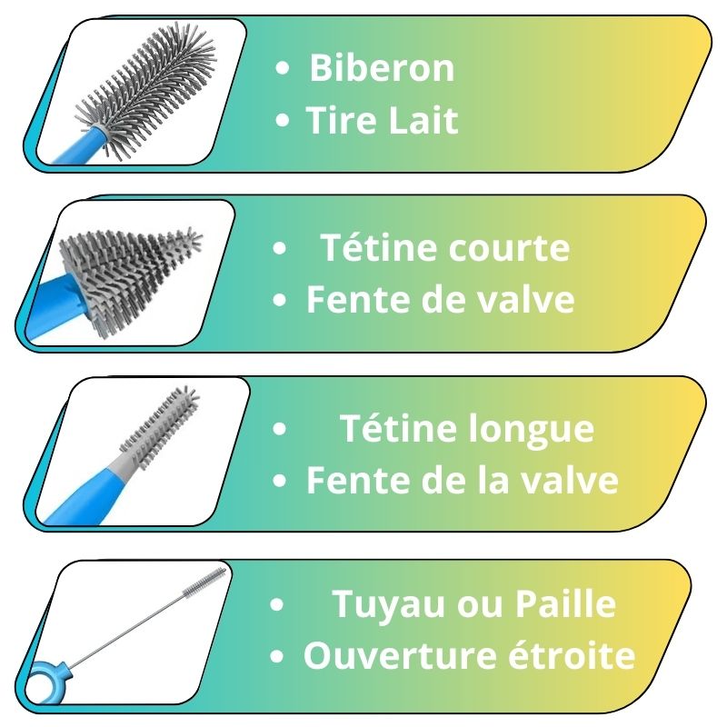 Notre lave biberon est fabriqué avec du silicone de qualité alimentaire et des matériaux ABS, totalement sûrs et inodores. Contrairement aux éponges traditionnelles qui deviennent vite des nids à bactéries, notre appareil offre un nettoyage hygiénique parfait à chaque utilisation.